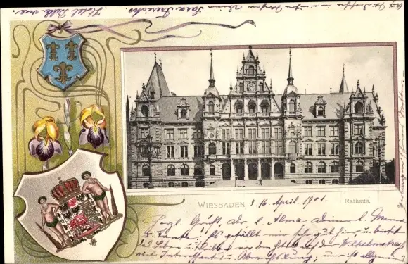 Präge Wappen Ak Wiesbaden in Hessen, Rathaus
