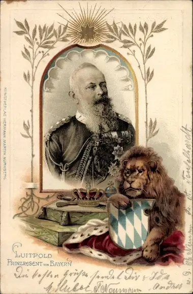 Präge Wappen Litho Prinzregent Luitpold von Bayern, Löwe