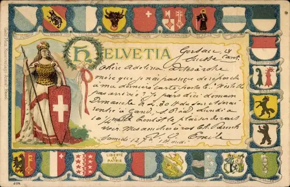 Präge Wappen Litho Schweiz, Kriegerin mit Speer und Schutzschild