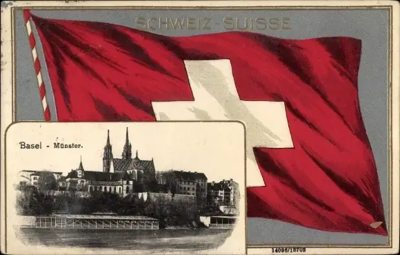 Präge Wappen Passepartout Ak Bâle Basel Stadt Schweiz, Münster, Flagge