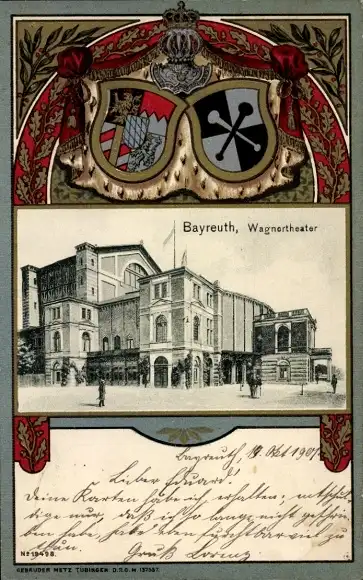 Präge Wappen Passepartout Ak Bayreuth in Oberfranken, Wagnertheater