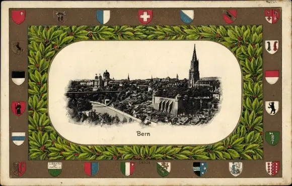 Präge Wappen Passepartout Ak Bern Stadt Schweiz, Blick auf den Ort