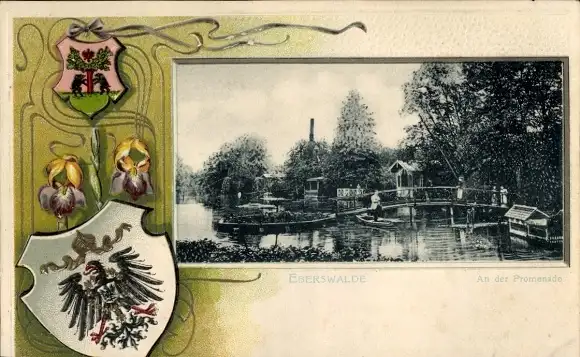 Präge Wappen Passepartout Ak Eberswalde in der Mark, An der Promenade