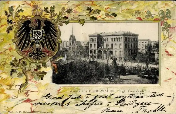 Präge Wappen Passepartout Ak Eberswalde in der Mark, Königliche Forstakademie