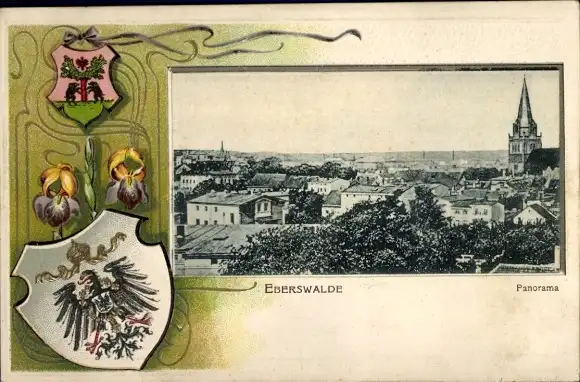 Präge Wappen Passepartout Ak Eberswalde in der Mark, Panorama