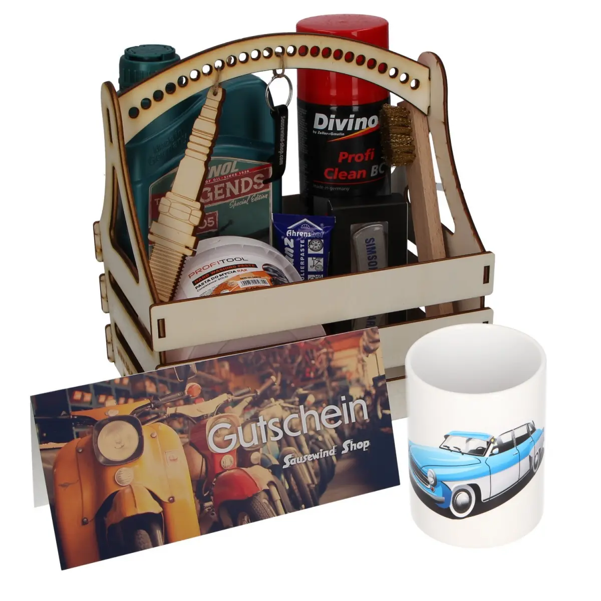 Vielseitiger Inhalt: Hochwertiges Zubehör und nützliche Helfer für jeden Wartburg-Liebhaber.