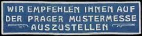 Wir empfehlen ihnen auf der Prager Mustermesse auszustellen., Größe/Zustand: 2x6 , leicht beschädigt, Original alte Reklamemarke die seinerzeit für die Werbung benutzt wurde