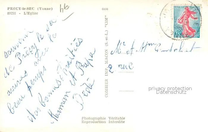 Precy-le-Sec Eglise Precy-le-Sec postalisch gelaufen 1966 Erhaltung siehe scans [WerneD78] WernPID7