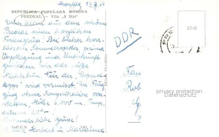 Predeal Vila 9 Mai Predeal postalisch gelaufen 1984 Erhaltung siehe scans [WerneD78] WernPID7