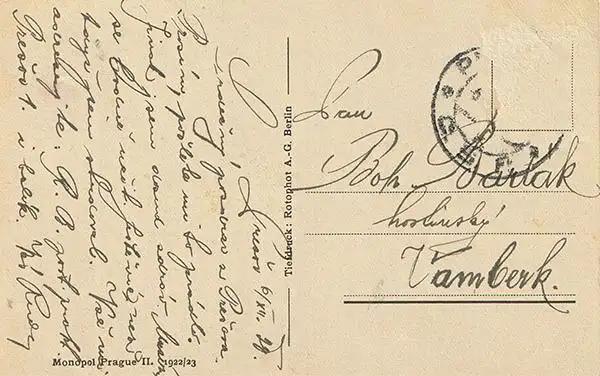 Prague, Monopol 1923/23. 9 x 14 cm. In gutem Zustand.