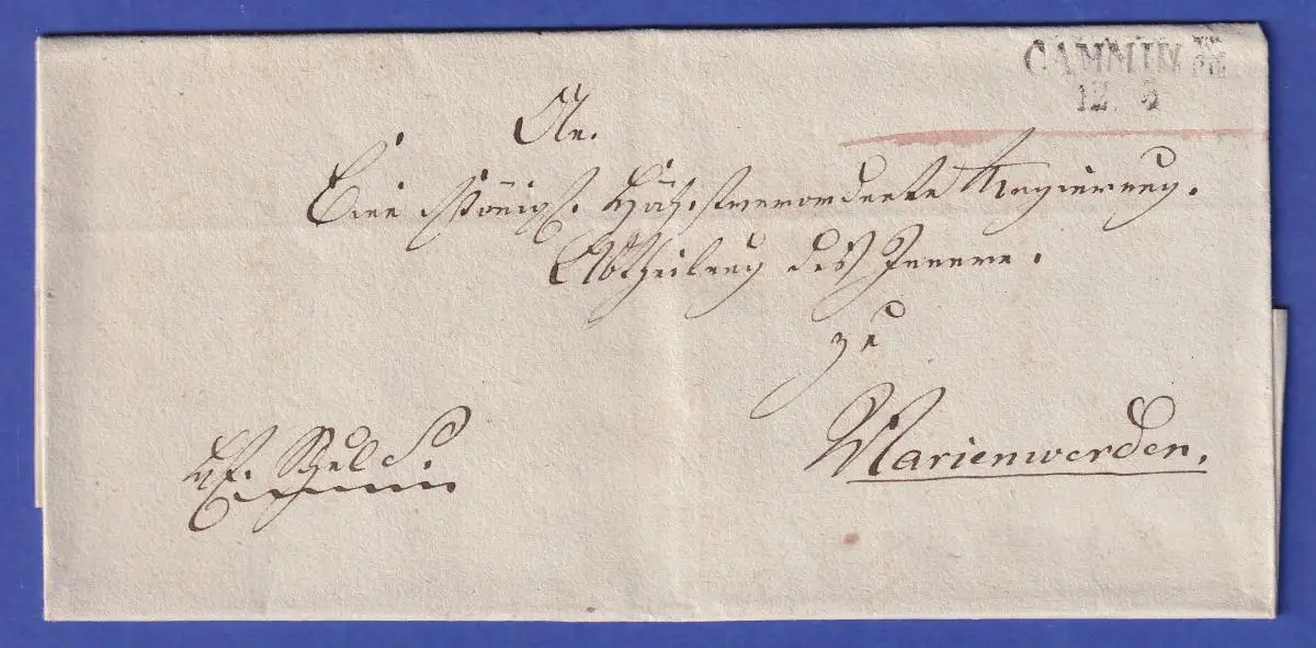 Preußen Vorphila-Dienstbrief mit Zweizeiler CAMMIN, nach 1825