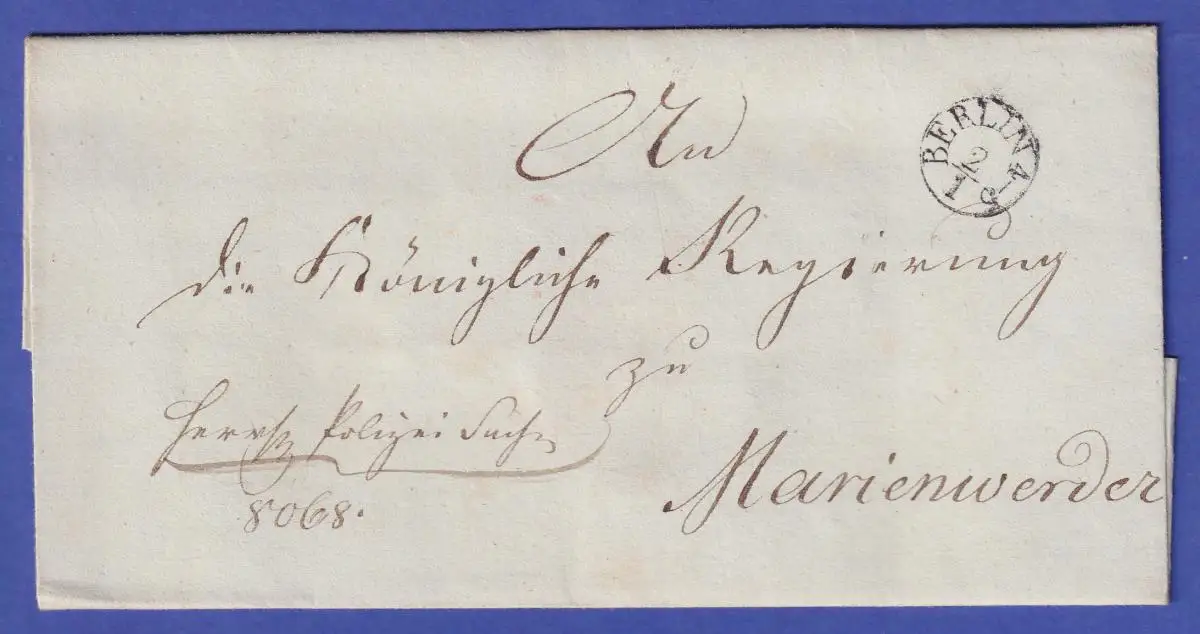 Preußen nach 1817 Vorphila-Brief mit schwarzem Fingerhutstempel BERLIN