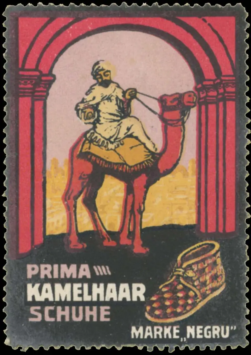 Kamel, Schuhe, Loewenick, Druck: Jacob & Alfred Meyer, Frankfurt/Main, Größe/Zustand: 6x4 , guter Zustand, Original alte Reklamemarke die seinerzeit für die Werbung benutzt wurde