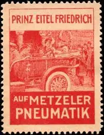 Auf Metzeler Pneumatik. Karminrot, Größe/Zustand: 4x3 , guter Zustand, Original alte Reklamemarke die seinerzeit für die Werbung benutzt wurde