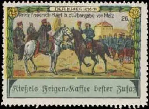 Serie: Der Krieg 1870-71, Kießels Feigen-Kaffee bester Zusatz, Größe/Zustand: 4x6 , guter Zustand, Original alte Reklamemarke die seinerzeit für die Werbung benutzt wurde