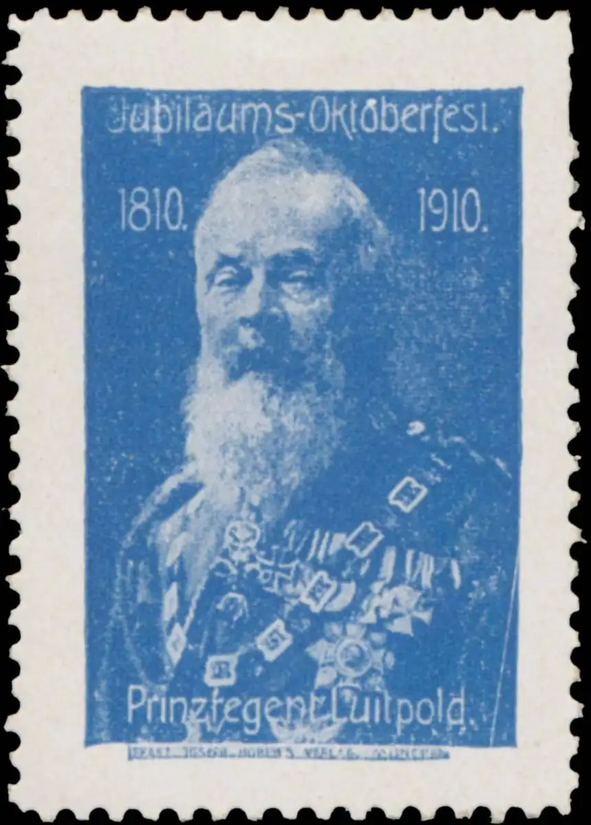 Jubiläums Oktoberfest, Druck: Frans Joseph Huber, München, Größe/Zustand: 4x3 , guter Zustand, Original alte Reklamemarke die seinerzeit für die Werbung benutzt wurde