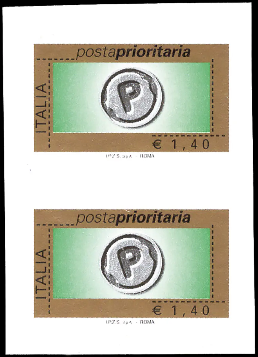 MNH - Vollgummi - - Priority Post Euro 1,40 Ausgabe Nr. 10 Nr. 2932Ab nicht gestanztes vertikales Paar - nicht gelistete Sorte Cod.806/182