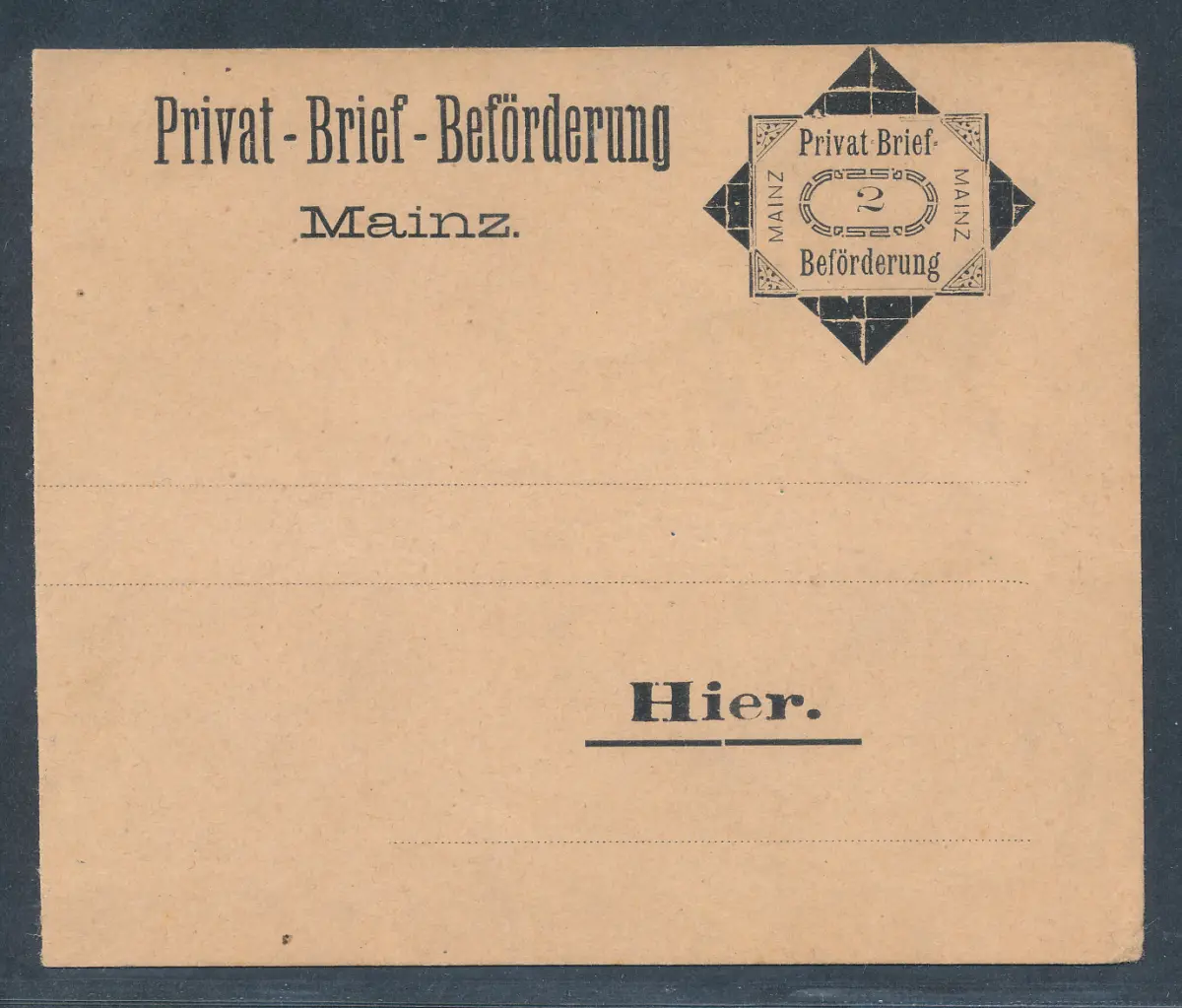 Privatpost, 2 Pf. Ganzsache-Karte Privat-Brief-Beförderung Mainz ungebraucht.