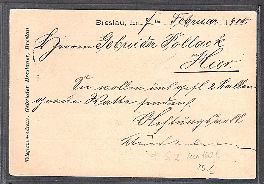 Privatpost, Breslau EF. Mi.-Nr. G2 als Ortskarte.