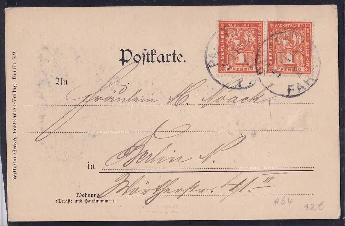Privatpost, Packetfahrtkarte Berlin, ME.F. Mi.-Nr. 64.