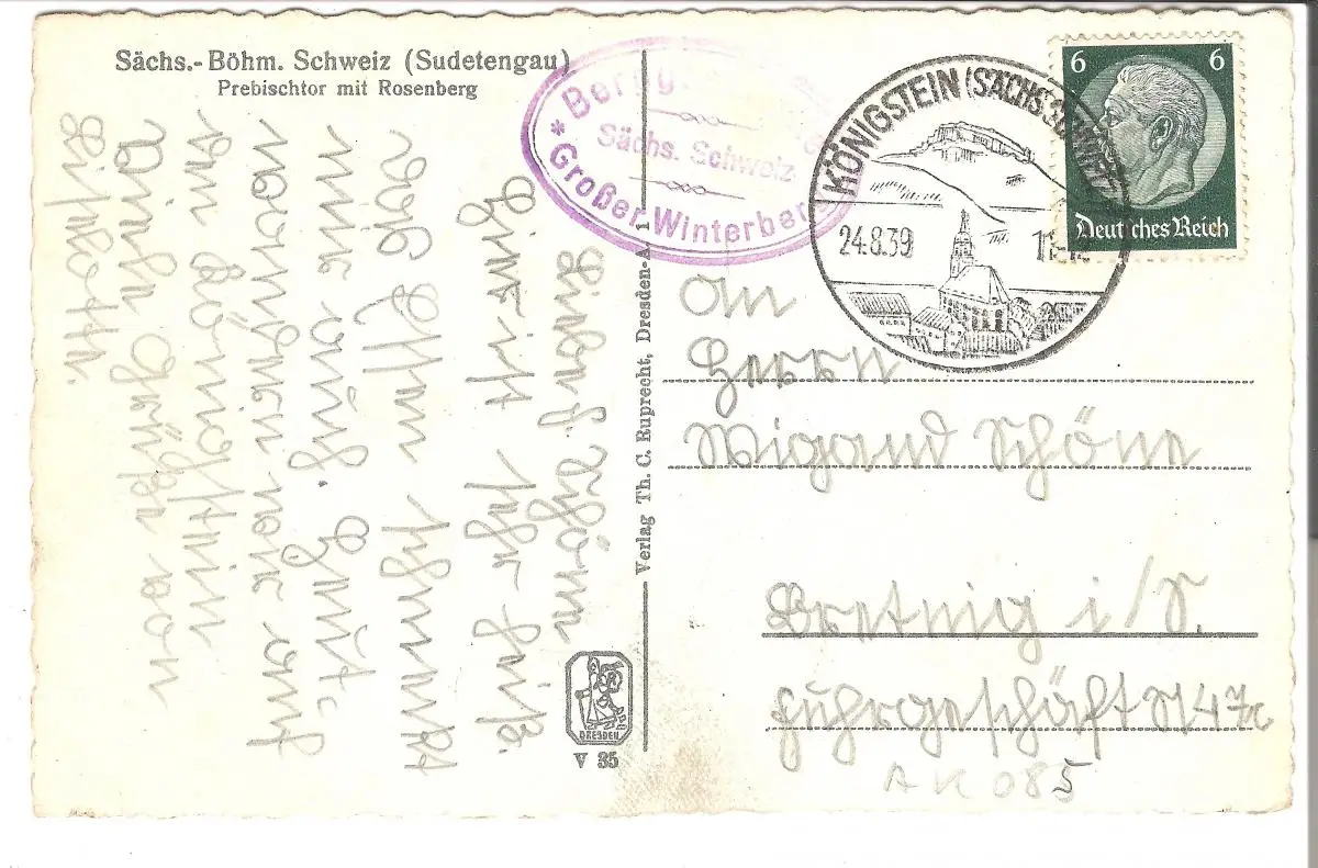 gelaufen mit Marke und Stempel von : 1939