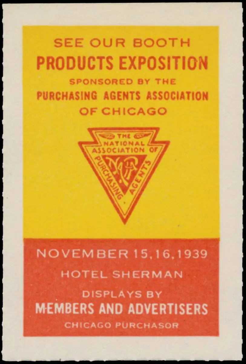 Sponsored by Purchasing Agents Association of Chicago, Hotel Sherman, Größe/Zustand: 5x3 , guter Zustand, Original alte Reklamemarke die seinerzeit für die Werbung benutzt wurde