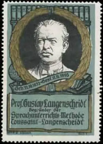 Begründer der Sprachunterrichts-Methode Toussaint-Langenscheidt, Rückseite mit Erläuterungen, Serie 3, Bild 1, Größe/Zustand: 6x4 , guter Zustand, Original alte Reklamemarke die seinerzeit für die Werbung benutzt wurde
