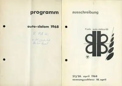 Programm 4. VCB Auto-Slalom Berlin 27./ 28.4.1968