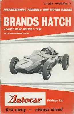 Programm Brands Hatch International F 1 Motor Racing 1.8.1960