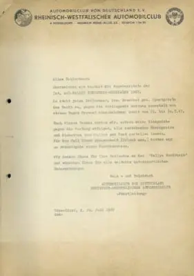 Programm Int. AvD Rallye Nordrhein-Westfalen 15.-16.7.1967