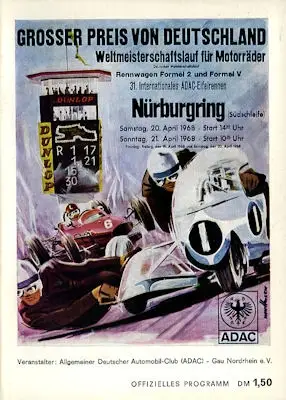52 Seiten DinA 5 Großer Preis von Deutschland für Motorräder WM Lauf, 31. Int. ADAC Eifelrennen F2 + Formel V Guter Zustand
