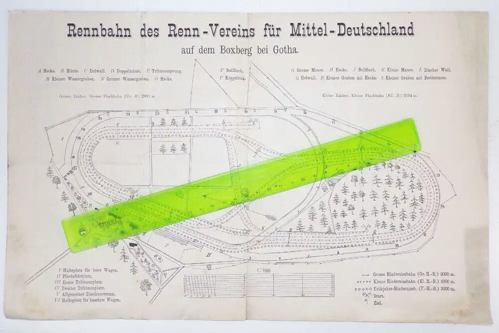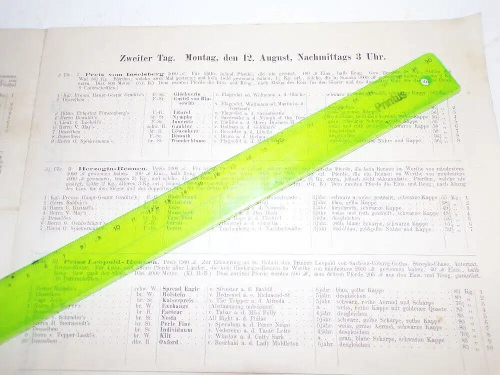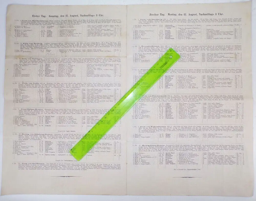 Originales Programm, zum Rennen zur Gotha 1889. Renn - Verein für Mittel - Deutschland. Format: 26,5 x 41 cm. Insgesamt 4 Seiten. Erhaltung: mehrfach gefaltet, stockfleckig, leicht knittrig. Alles weitere siehe bitte Fotos.