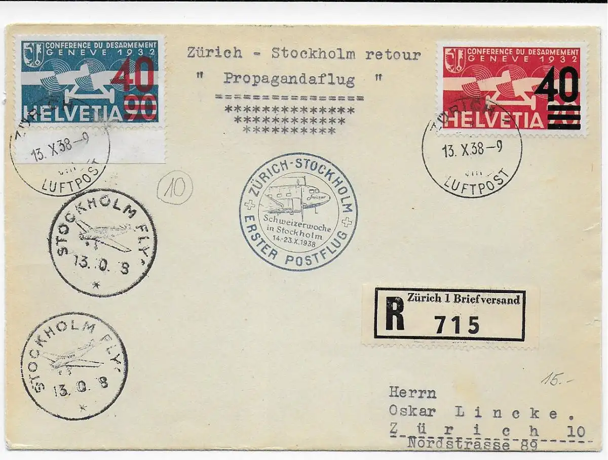 Propagandaflug Zürich-Stockholm 1938 und zurück