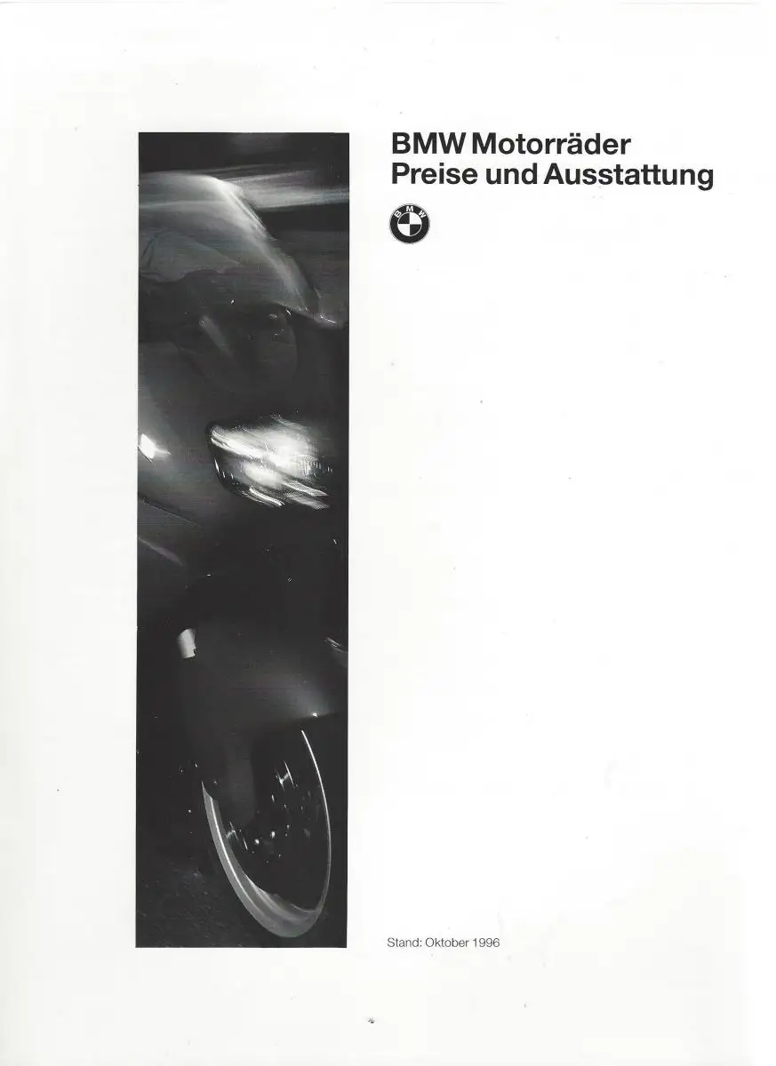 Prospekt. BMW Motorräder 1996 mit Preisliste.