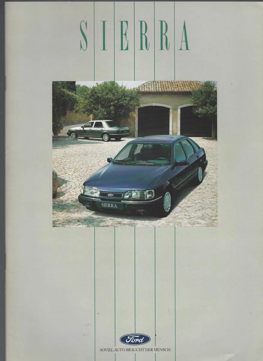 Prospekt Ford. Sierra. Mit Preisliste, Lieferumfang, Technik und Farbtafel. 1990.