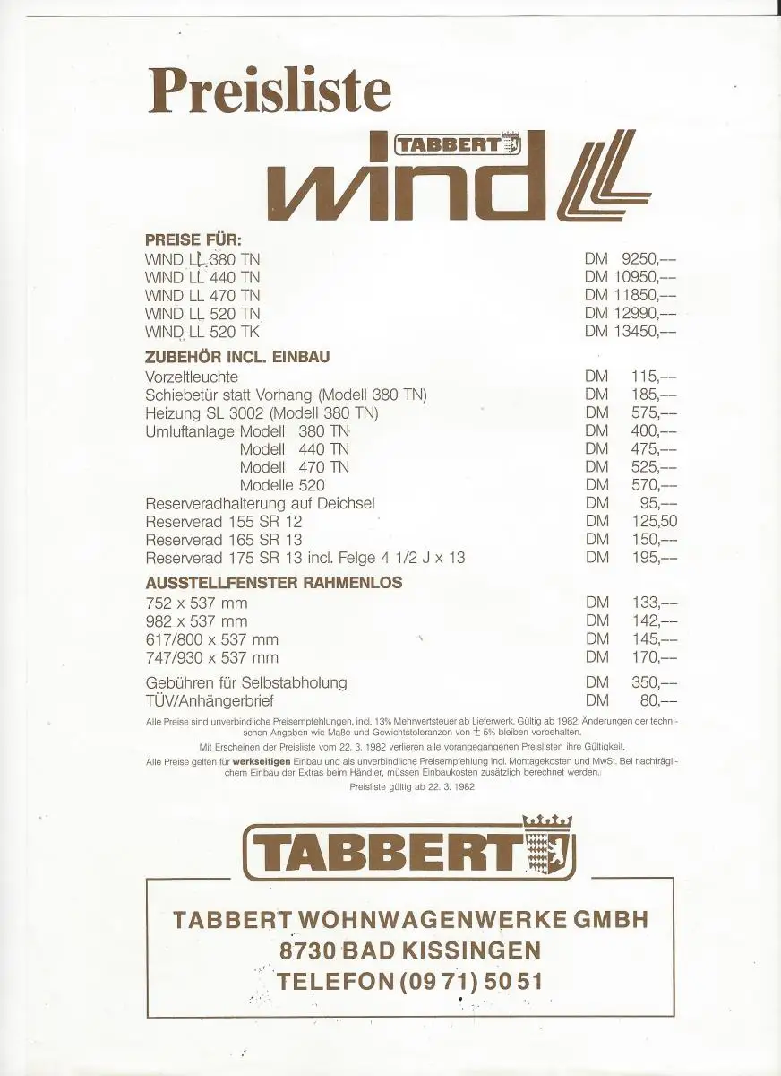 Titel: Prospekt Tabbert. Die Leichtlauf-Caravans. Wind LL