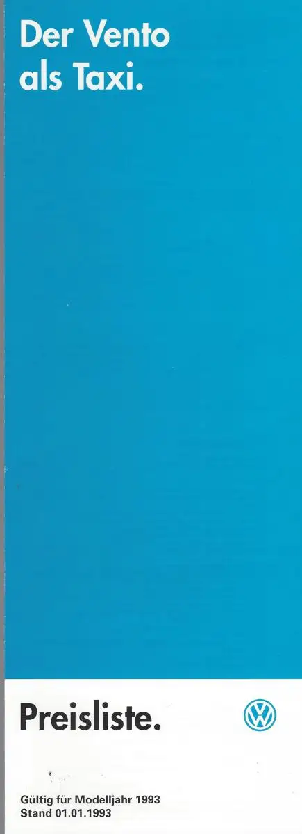 Titel: Prospekt VW. Der Vento. Das Taxi. 1993