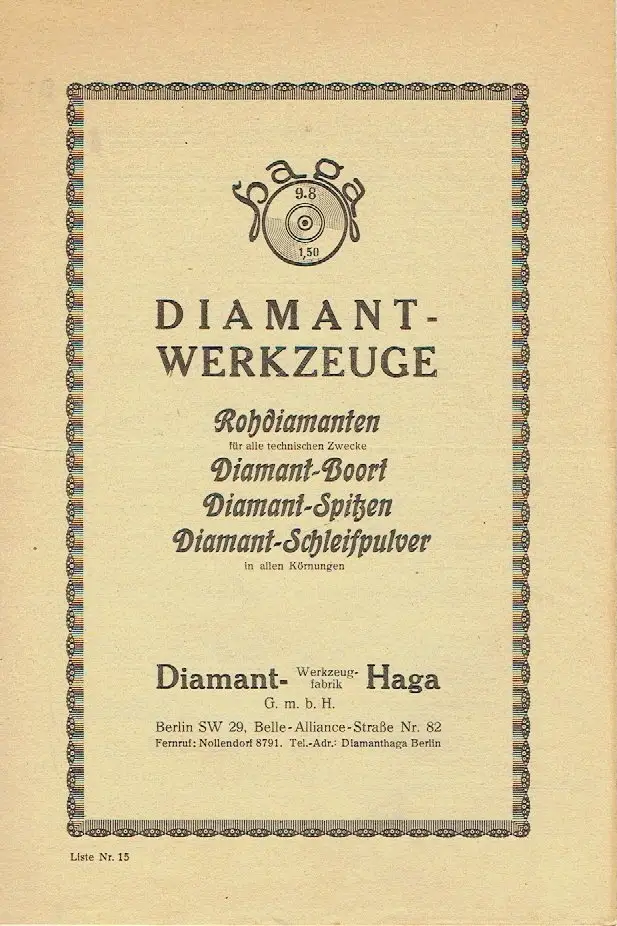 Herausgeber: Diamant-Werkzeugfabrik Haga, Berlin