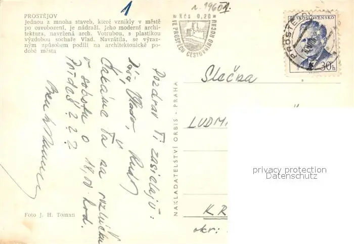 Prostejov Jednou z mnoha staveb ktere vznikly v meste po osvobozeni Prostejov postalisch gelaufen 1960 Erhaltung siehe scans [WerneD78] WernPID7