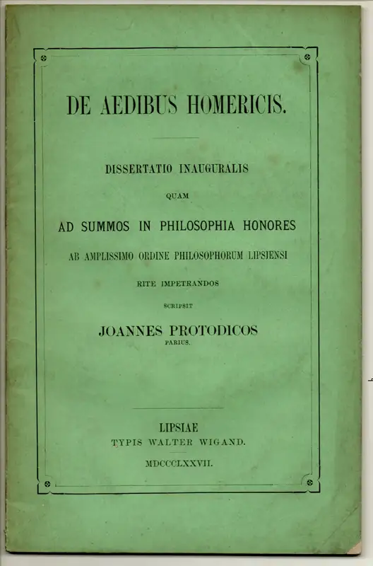 Protodicos, Joannes: De aedibus Homericis. Dissertation.