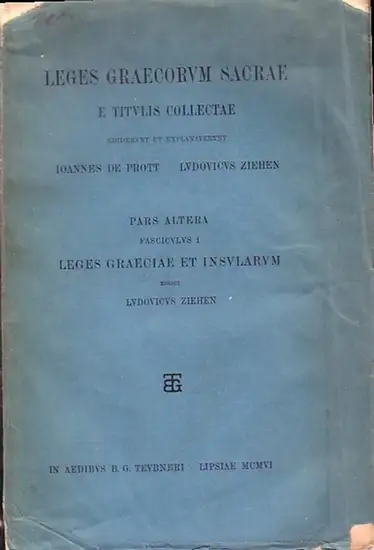 Prott, Ioannes de / Ziehen, Ludovicus (ed.): Leges Graecorum Sacrae e Titulis Collectae. Pars Altera. Fasciculus I: Leges Graeciae et Insularum. Editit: Ludovicus Ziehen.