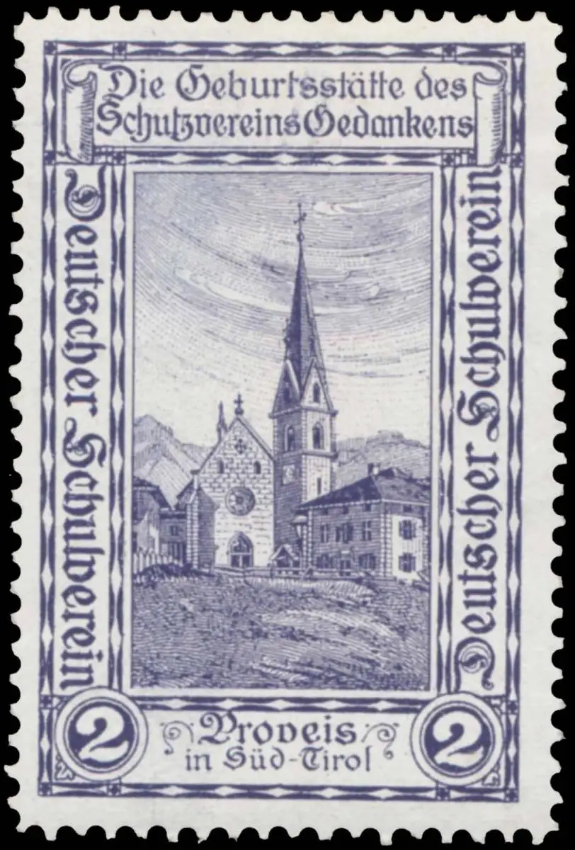 Die Geburtsstätte des Schutzvereins Gedankens. Grauviolett, Größe/Zustand: 5x3 , guter Zustand, Original alte Reklamemarke die seinerzeit für die Werbung benutzt wurde