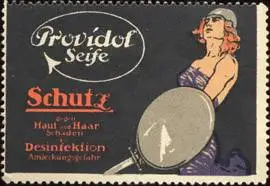 Schutz gegen Haut und Haarschäden zur Desinfektion von Ansteckungsgefahr , Größe/Zustand: 4x6 , guter Zustand, Original alte Reklamemarke die seinerzeit für die Werbung benutzt wurde