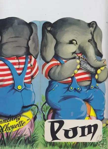 Bemerkungen: Einbd. zeigt die Silhouette des sitzenden Mundharmonika spielenden Elefanten Pum.