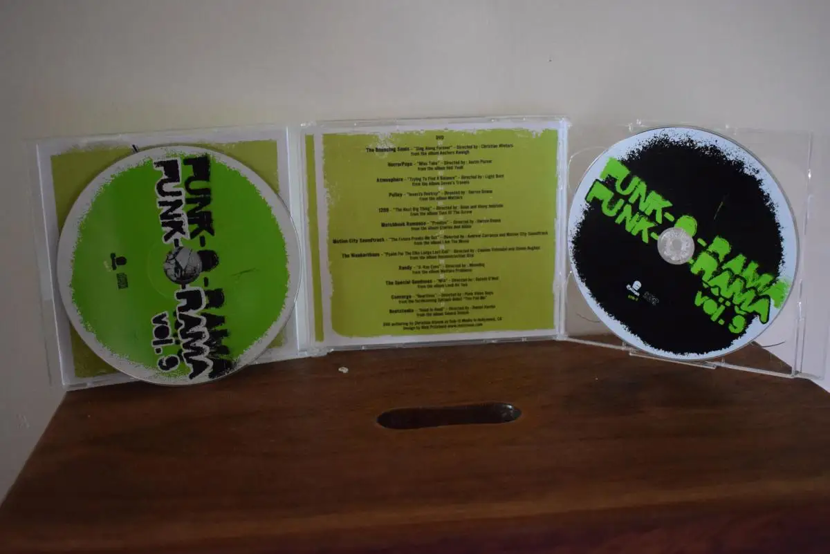 Cover leichte Gebrauchspuren und Kratzer, Zentrierungen innen beschädigt , Booklet sehr gut , CD und DVD minimale Gebrauchspuren.