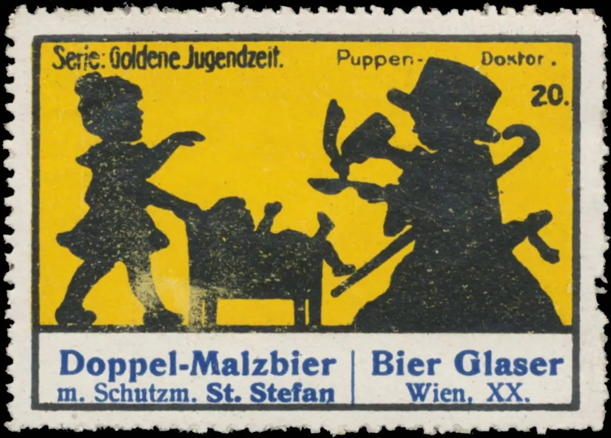 Doppel-Malzbier mit Schutzmarke St. Stefan, Serie: Goldene Jugendzeit, Kinder, Puppe, Bild 20 , Größe/Zustand: 4x6 , leicht beschädigt, Original alte Reklamemarke die seinerzeit für die Werbung benutzt wurde