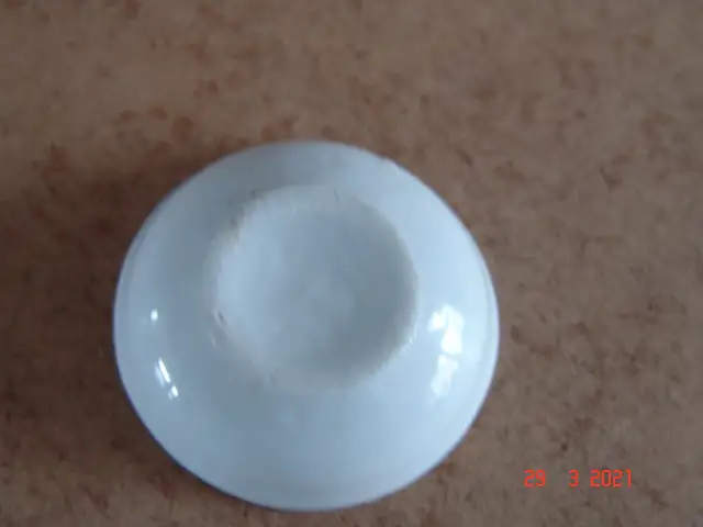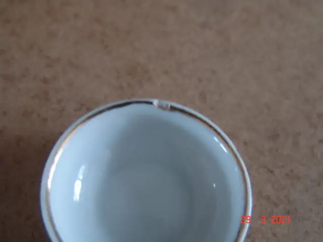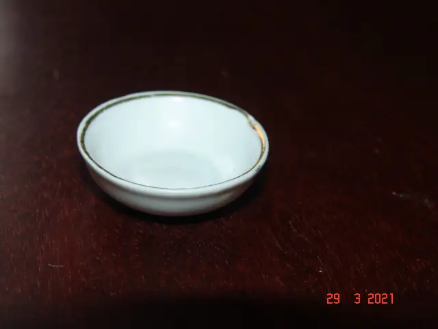 Angeboten wird eine Porzellanschüssel in altersgemäß sehr gutem Zustand, ohne Sprünge, der Goldrand ist nur ganz leicht berieben. Es gibt einen Abplatzer ( 4. Foto ) ca 3mm x ca 1mm, der evtl. bei der Produktion oder vor em Bemalen in die Schale gekommen ist, denn der Goldrand läuft über diesen Abplatzer.