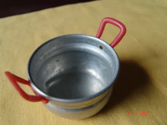 Maße: Topf mit geraden Griffen: Höhe ca 3,1 cm, Breite über beide Griffe gemessen ca 7 cm Ø ca 5,3 cm