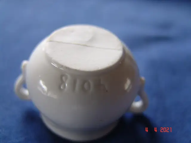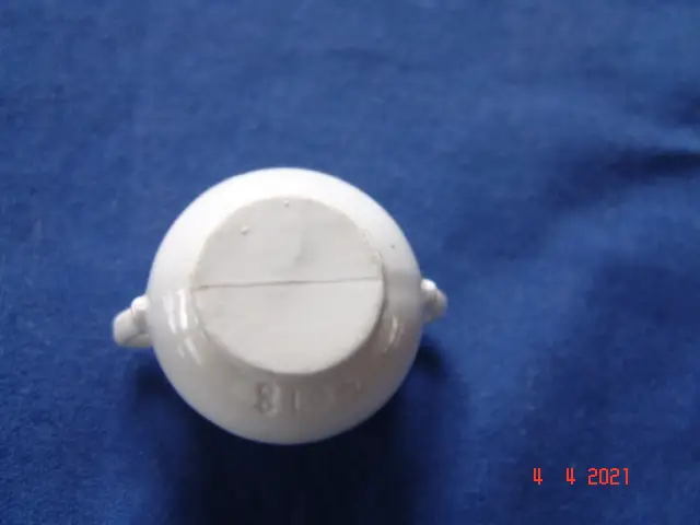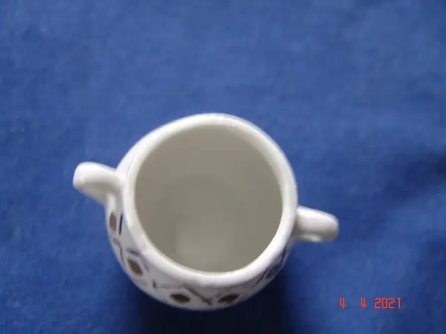 Höhe mit Deckel ca 5,3 cm, ohne Deckel ca 3,5 cm, Breite über beide Henkel ca 5,4 cm, Ø oberer Rand ca 3,2 cm, Ø Stand ca 2,5 cm.