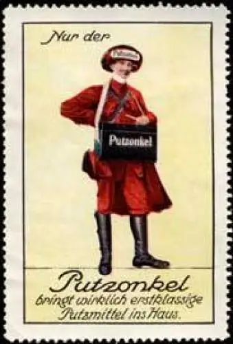 Nur der Putzonkel bringt wirklich erstklassige Putzmittel ins Haus. Reinigung, Größe/Zustand: 7x4 , guter Zustand, Original alte Reklamemarke die seinerzeit für die Werbung benutzt wurde